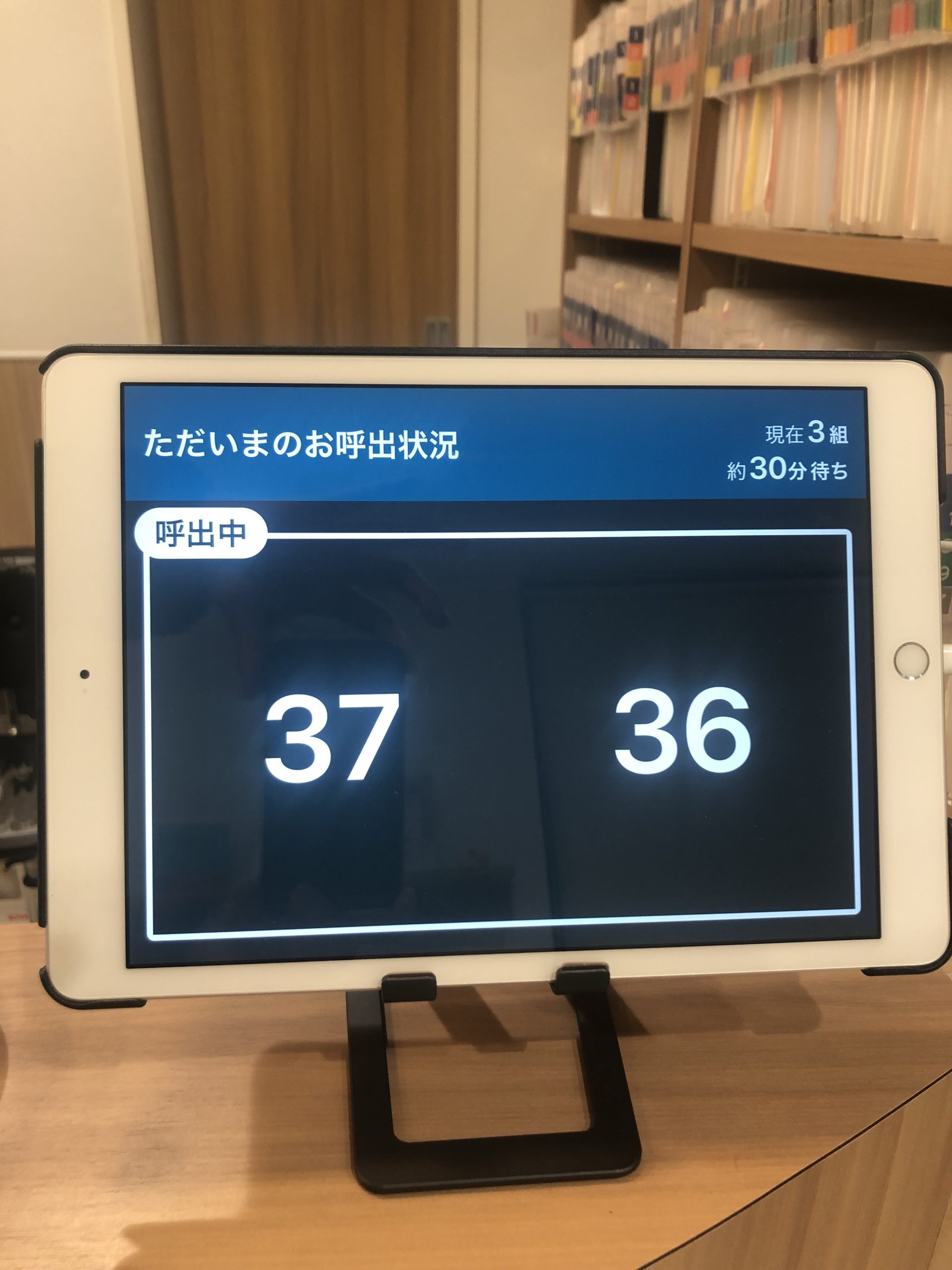 この表示ですと、36番の方が診察中で、37番の方も呼び出しをしている状況です。