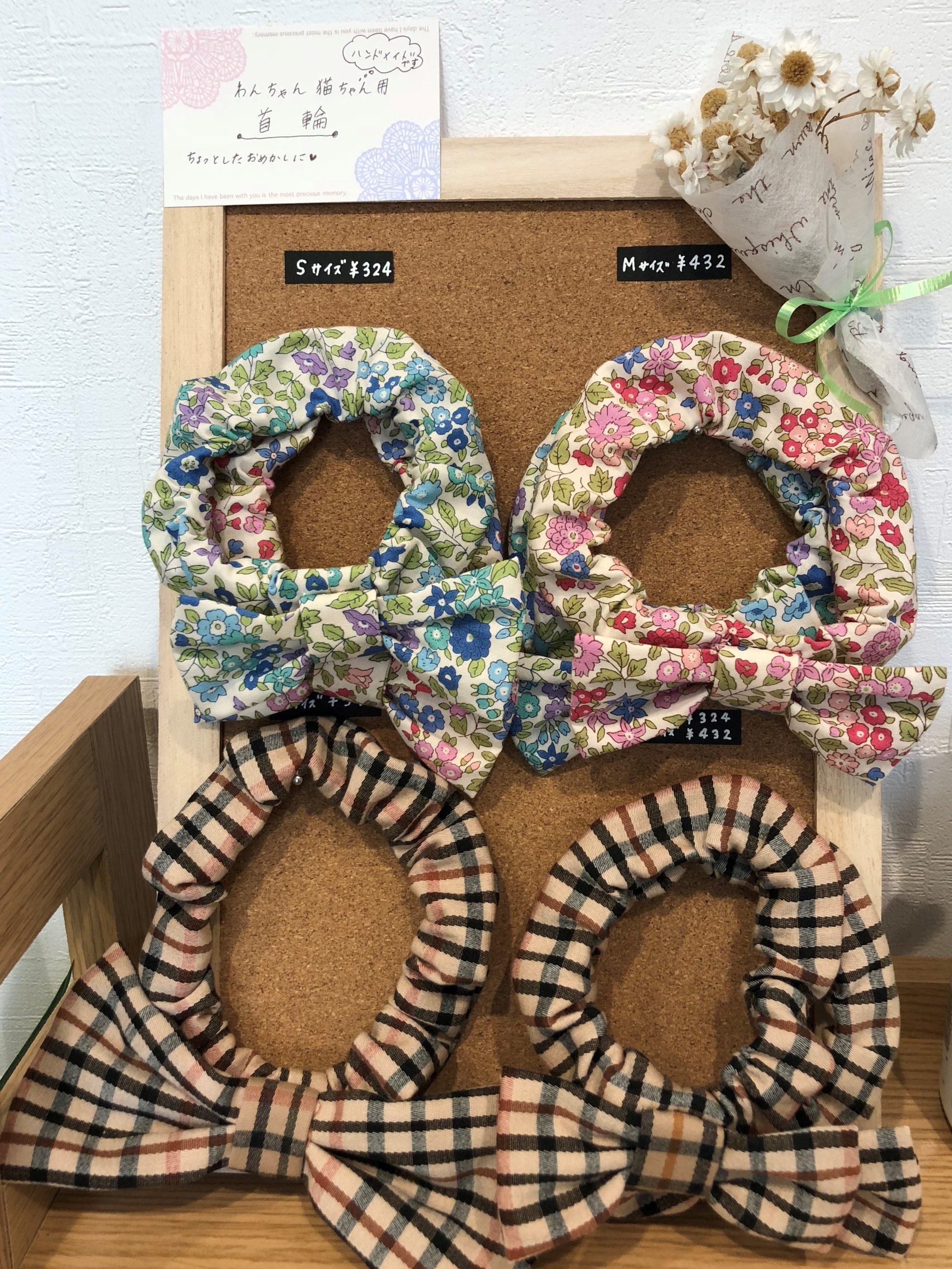 ハンドメイドの首輪を入荷しました。 S、M、Lの3サイズあります。 わんちゃんネコちゃんウサギさん用です。 &...