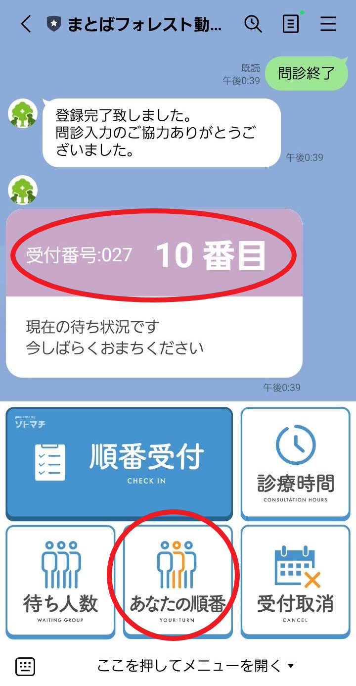 当院では、患者様の待ち時間を解消するために、LINEで順番受付ができるシステムを導入しています。自宅で順番受付ができ、待ち人数の確認もできます。順番が近づくとLINEにお知らせが届くので大変便利です。 LINEの友だち追加がまだの方は、下記よりご登録をお願いいたします。